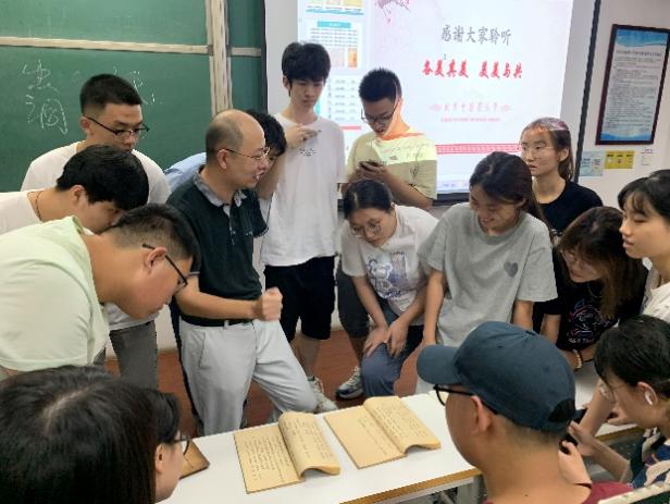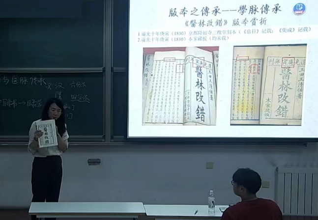课程组成员分别针对医籍本源之美、医籍传承之美等内容进行了课程讲授,并利用团队资源(“景和斋”<马捷和紫珊伉俪藏书室>藏中医古籍、温佳雨老师家藏中医古籍)进行了实体展示(共展示古医籍、明堂图等文献共计32种,共计69册/件),使学生沉浸式感受中医古医籍之美。