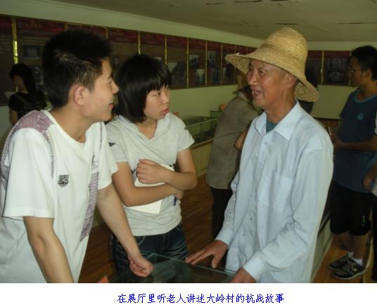 20日,我们在村支书的安排下,走访了大岭村村民和亲身经历过大岭村抗战的前辈,他们曾经在抗战中做出过巨大的贡献和牺牲,我们把慰问品一一交到老人手中,看到他们的纯朴、善良,我们深受感动。我们有幸一起步入展厅,面对文物,亲耳聆听并记录了老人们口述的大岭村抗战故事,让我们收获了生动难忘的一课。