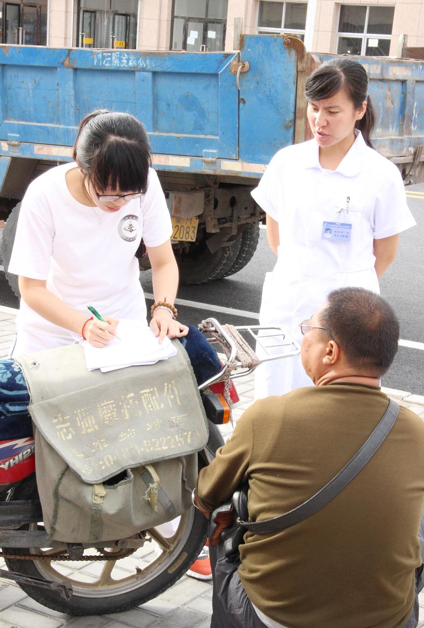 社区公共义诊在巴彦浩特西城区社区卫生服务中心中进行,诊室内前来应诊的居民络绎不绝,实践团除为当地居民进行中医四诊、针灸、拔罐、健康咨询、测血压等服务。此外,研究生们还就特殊地理环境中居民体质情况做了调研。