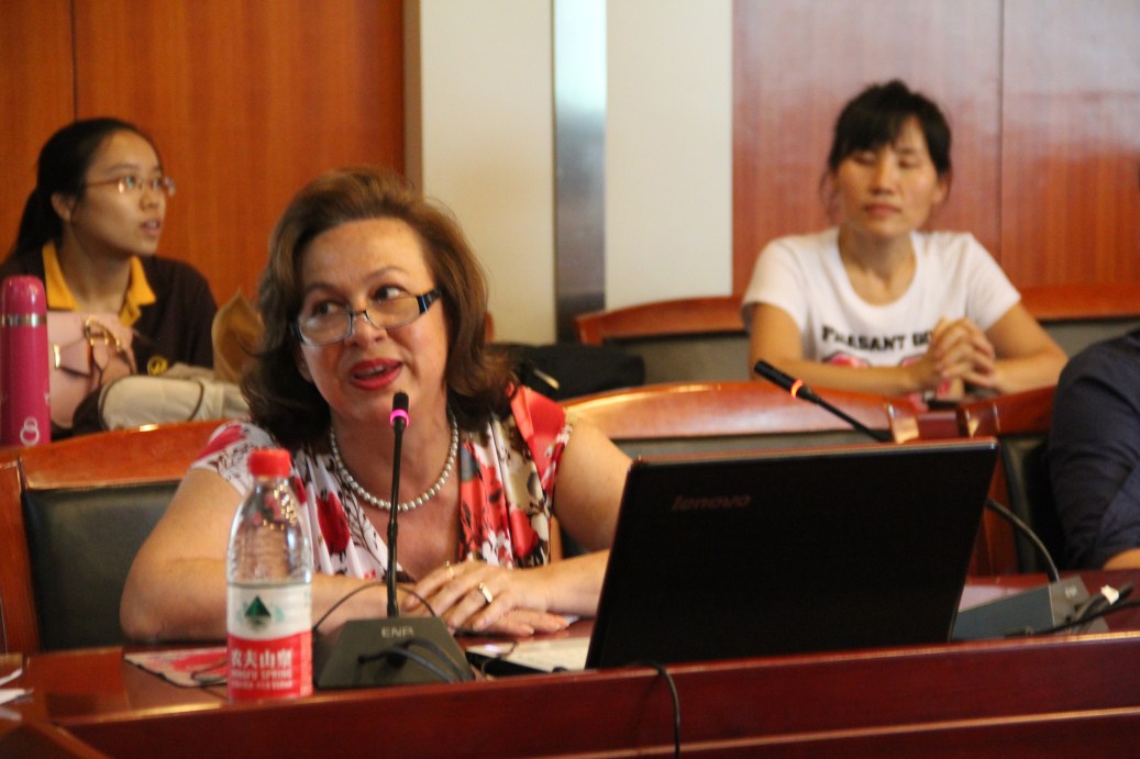 与会的老师、学生们与Liljana Arsovska教授针对翻译的各种问题、中医在墨西哥的传播、中国传统文化的在墨西哥展开了热烈的讨论和交流。Liljana Arsovska教授对同学目前学习状况进行了解,表示中医药学的翻译和文化传播,需要中外学者的共同合作,希望搭建一个中-外中医学翻译的平台,希望同学们能担起中医的海外传播和翻译重任。Liljana Arsovska教授提到西方人目前对传统医学疗法非常感兴趣,认为如果能有一个墨西哥医学生学习中医学的平台就更好了。国际交流与合作处张立平处长针对Liljana Arsovska教授提到的外国人学中医的学习问题,阐明我校远程中医药英语硕士班的教学模式,就是为喜欢中医的外国人搭建的平台,希望能与墨西哥理工大学医学及顺势疗法成人小说
