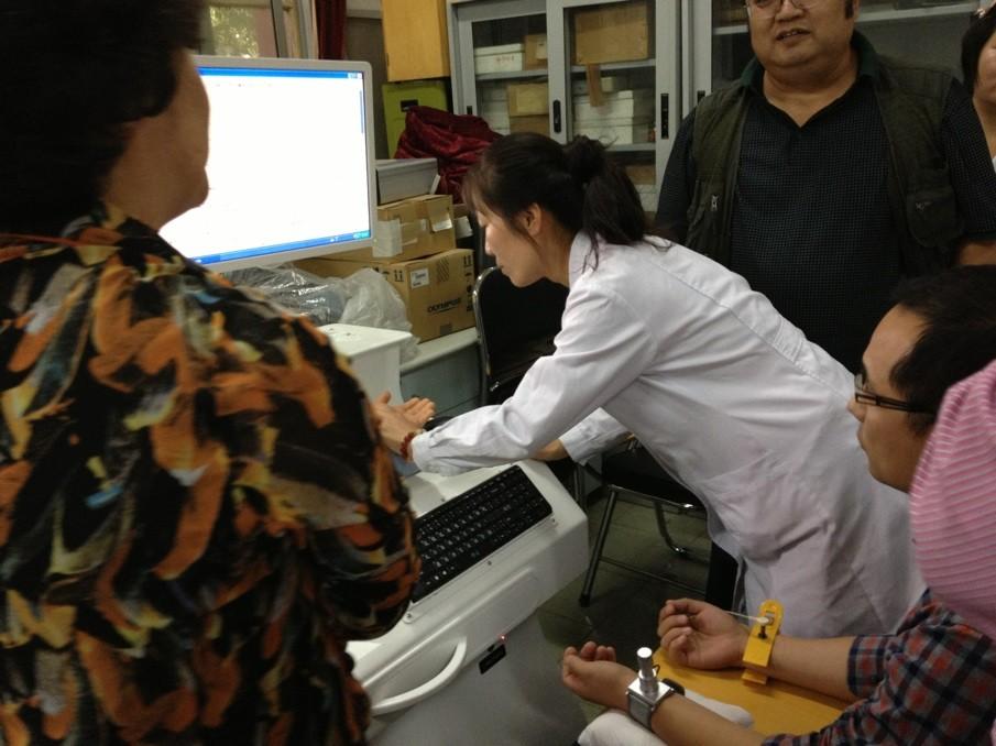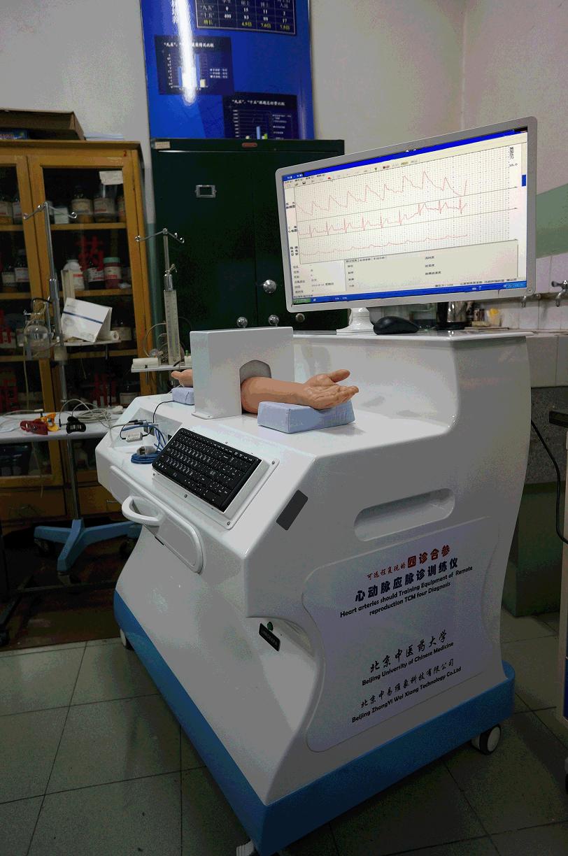 考察,期间大学“可获取人体诊断信息关键技术创新团队”生物工程实验室发布了一款名为可远程复现的四诊合参之心动脉应脉诊训练仪,装置由心电发生器的心电信号触发机械心泵系统;以“位”“数”“形”“势”四属性为纲,模拟输出单一脉动信息或组合全部符合中医脉学理论的脉动信息,实现心动脉应脉诊训练。可远程复现的数字化、量化的中医诊断训练设备的远程诊断研制告罄。专家经过了客观细致的测试观察和亲临体验,充分肯定了仪器的创新性能、可重复性和远程复现诊疗系统的可构架性。