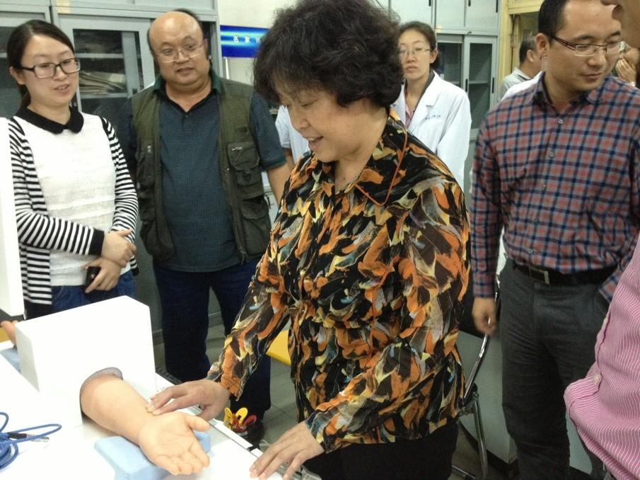 仿生脉诊手的寸口血管有刻度标记,医生和受训者训练后,仿盲人触觉可得到脉管宽度。脉管内流体的有形成分、粘弹性、温度、粘度等属性仿真生物流体。