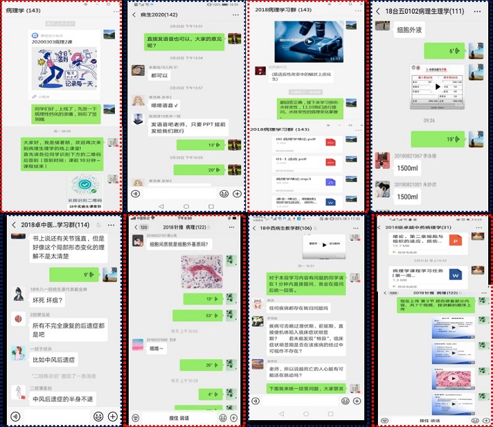 除准备电子教材、教学幻灯及习题、课外学习网站以及阅读材料等常规教学资源外,教研室老师充分考虑到部分学生的网络不稳定、时差等实际问题,各位老师临时学习电脑高清屏幕录像软件程序,提前录制了相关授课内容,及时分享给学生,使学生不会因为网络等问题而错过相关内容的学习,让授课班级的所有学生都能感受到病理教研室老师带给他们的温暖。