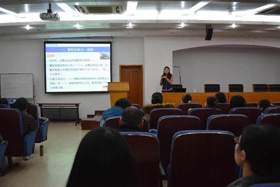 分会场,“蒙药研究的几点体会——我所经历的中医药和民族医药的交叉融合”专题讲座在博物馆一楼报告厅成功举办,讲座主讲人是我校民族医药研究所的佟海英副主任医师,学校部分老师及近百名学生参加。