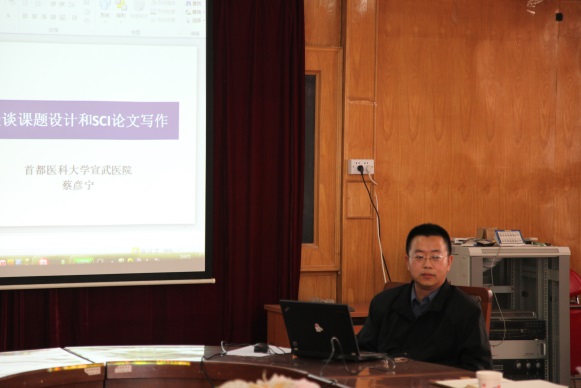 蔡教授首先就目前科研工作者的生活工作现状与大家进行了交流,总结出科学研究不是一项容易的工作,一篇科研文章并不是实验数据的简单罗列,若缺乏设计的灵魂,最终很难写出高水平的文章,勉励大家只有踏实做好课题设计,才能做好的研究,出好的文章。舍得投入才有所产出。他提倡大家摆好心态,做快乐的科研。蔡教授指出科学研究是自我实现的捷径。接下来,又从“什么是课题”、“课题设计三部曲”以及“问题来源”、“如何确立问题”等方面讲述了SCI写作要点。紧接着蔡教授结合自身体会点明了文献阅读和反复思考对课题设计的重要性。在讲座过程中,蔡教授还多次申明了课题设计严谨性和创新性的重要地位,并详细阐释了应如何做到严谨与创新。蔡教授的讲话条理清晰,又不失生动,他把自己研究领域的工作和SCI写作经历当做故事娓娓道来,在听故事的同时,大家明白了一个朴实的道理:SCI论文的写作“无它,唯手熟耳”。最后,蔡教授就英语的积累、杂志的选择、图表的编辑等SCI论文写作的关键环节进行了总结和示范。