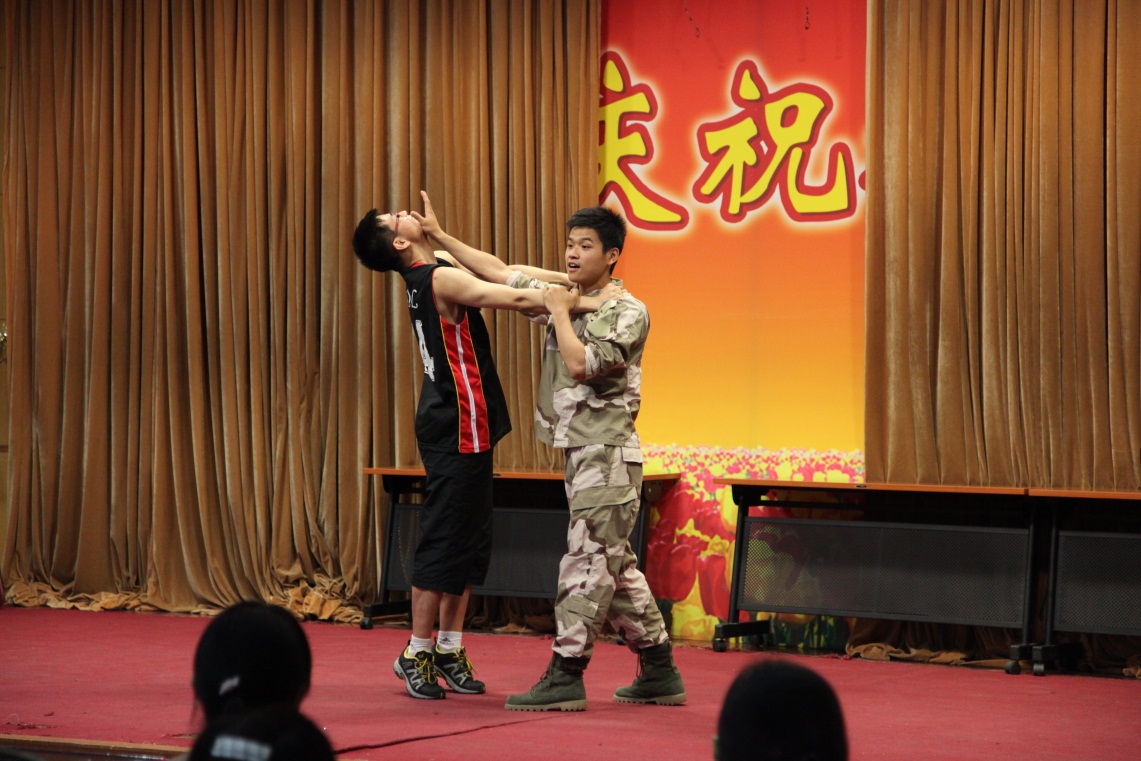 两位教官分别从绑架劫持应对与预防、爆炸物的识别预防及应对方法、火灾逃生技巧、个人防卫技巧、跟踪与反跟踪、旅行交通与住宿安全等多个方面进行培训。培训采用模拟演练与讲解相结合的方式进行,生动直观,引起现场师生的阵阵掌声。绑架应对讲解前模拟了一场绑架事件的全过程,每项内容讲解后都有老师和同学踊跃到台上对教官所教的动作进行实际演练。现场气氛活跃,培训效果显著。培训过后,师生们还就生活中可能遇到的问题进行提问,教官一一进行解答。